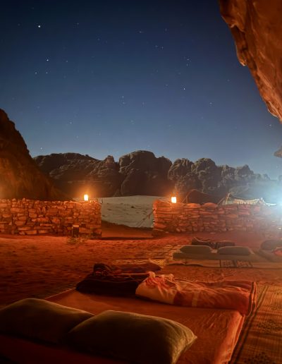 - Pour ceux qui désirent combiner une journée complète de jeep ou de randonnée, la nuit est proposée à 25 JOD/personne au lieu de 35 JOD.